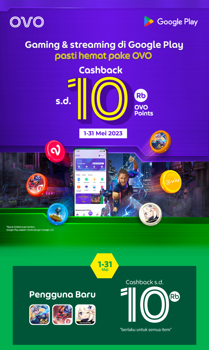 Beli item game inceran sampe langganan aplikasi streaming ada cashback s.d. 10rb OVO Points buat kamu!