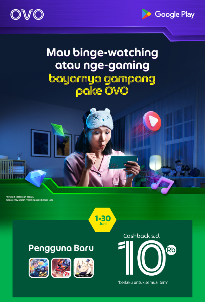 Hemat sebulan full bayar pake OVO di Google Play lho!