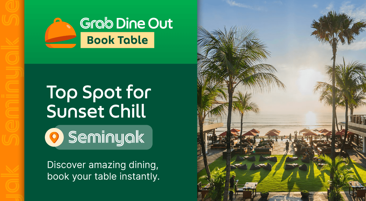 Why stress about finding tables when Grab Dine Out can secure the best sunset spots? Seminyak's top beach restaurants are just a tap away! 🏖️